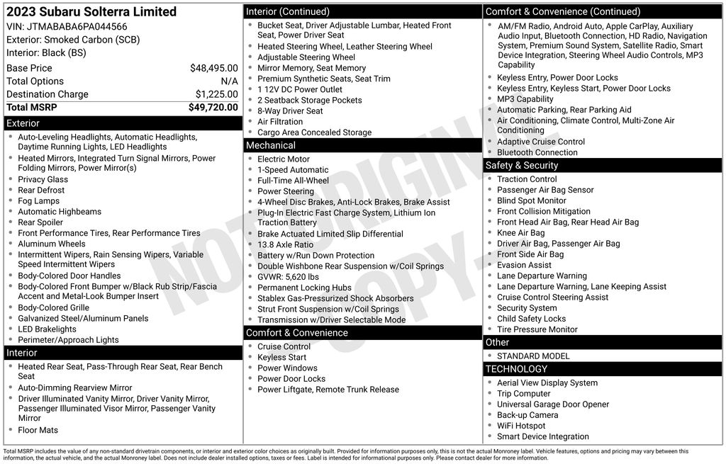 - Tracker system: Subaru Solterra Connect - Remote Connect (1 year trial included)