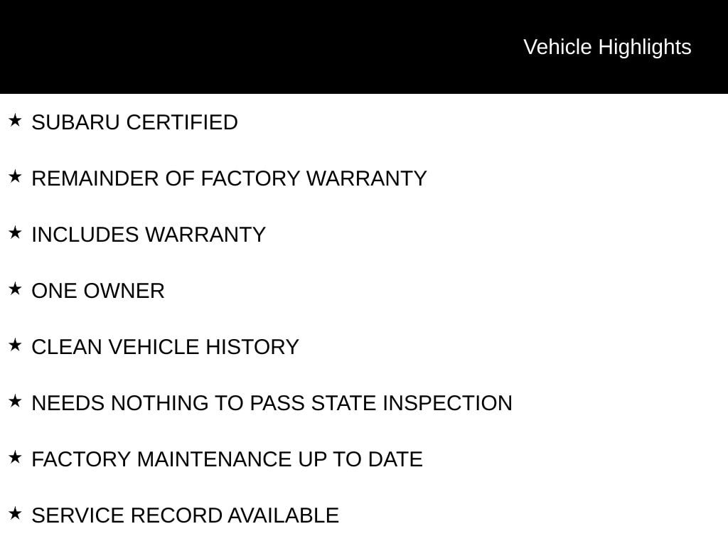 Certified. Subaru Certified Pre-Owned Details: