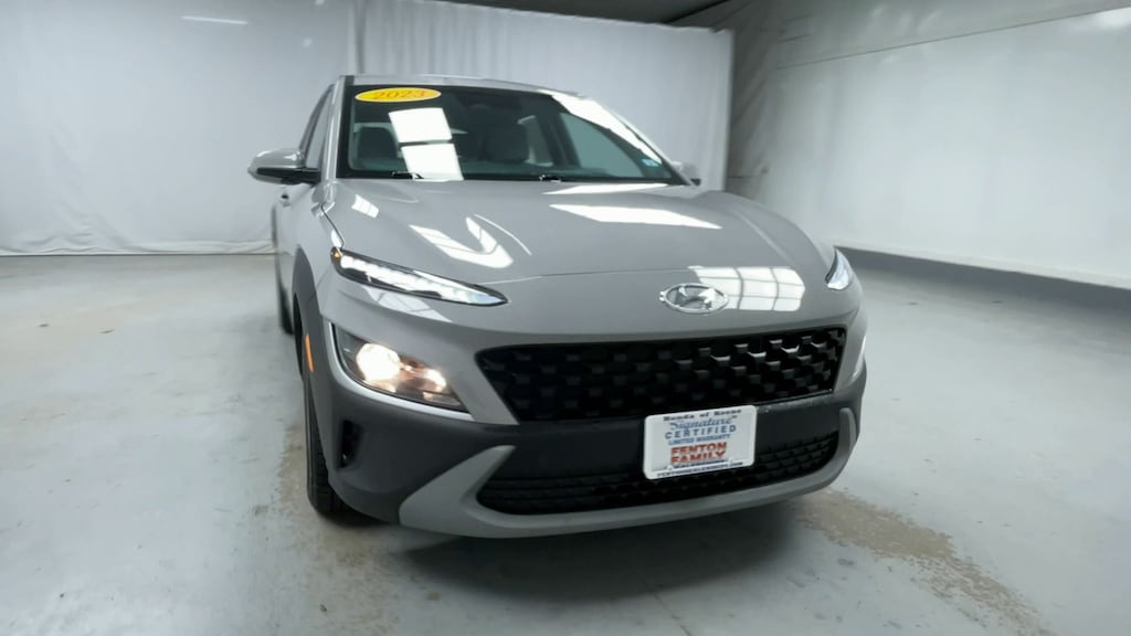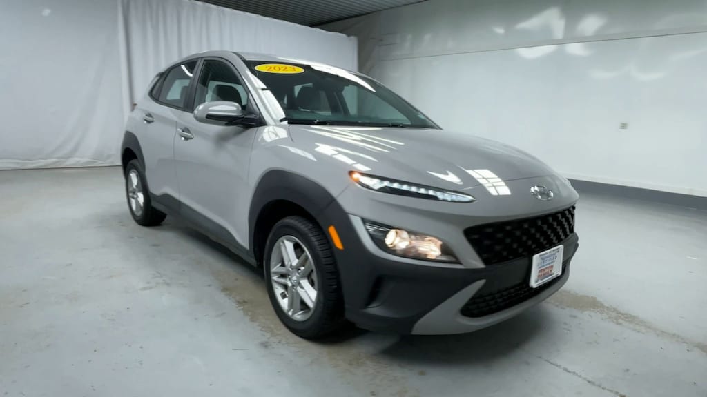 CARFAX One-Owner. Certified. 2023 Hyundai Kona SE AWD 2.0L I4 DOHC Dual CVVT CVT Passes NH Inspection, 4WD/AWD, Apple CarPlay-Android Auto, CERTIFIED, CLEAN CAR FAX 1 OWNER, NEW BRAKES NEW ROTORS, Kona SE, 4D Sport Utility, 2.0L I4 DOHC Dual CVVT, CVT, AWD, Cyber Silver w/Black Roof, Gray w/Cloth Seat Trim, 16" x 6.5J Alloy Wheels, Apple CarPlay & Android Auto, Cargo Blocks, Cargo Tray, Carpeted Floor Mats, Cloth Seat Trim, Driver door bin, Option Group 01, Power steering, Power windows, Rear window wiper, Remote keyless entry, Steering wheel mounted audio controls.