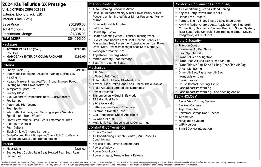 2024 Kia Telluride SX-Prestige AWD 8-Speed Automatic 3.8L V6 DOHC