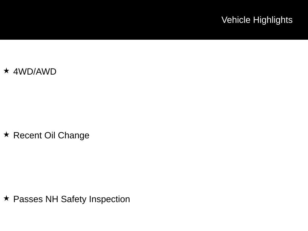 4WD/AWD, Recent Oil Change, Passes NH Safety Inspection.